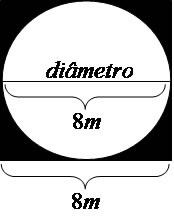 O raio da circunferência é igual a 4 metros, dessa forma seu diâmetro vale 8. A medida do lado do quadrado será correspondente ao diâmetro da circunferência, medindo 8 metros.