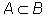Subconjuntoonde a notaçãoA contido em Bsignifica “A é subconjunto de B” ou “A está contido em B” ou “A é parte de B”. A leitura da notação no sentido inverso é feita como “B contém A”. Observe que a abertura do sinal de inclusão fica sempre direcionado para o conjunto “maior”. Na forma de diagrama é representado como: