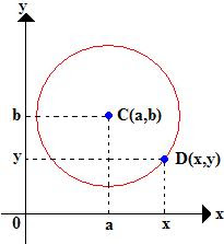 A distância entre o centro de uma circunferência e um ponto genérico a ela é o mesmo que calcularmos a distância entre dois pontos, que no caso são C(a,b) e D(x,y).
