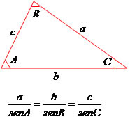 A lei dos senos estabelece relações entre as medidas dos lados com os senos dos ângulos opostos aos lados. Observe: