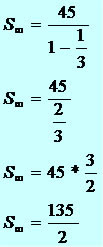 q = 15/45 = 1/3, como está entre -1 e 1, podemos dar continuidade ao cálculo da soma dos seus infinitos termos.