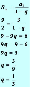 A soma dos infinitos termos da PG é 9/2. Determine a razão dessa PG sabendo que a1 = 3.