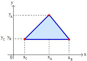 Considere o triângulo de vértices A(xA, yA), B(xB, yB) e C(xC, yC), veja a sua representação em um plano cartesiano: