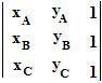 Sabemos que a área A = |D|, portanto é preciso que encontremos o valor de D.
