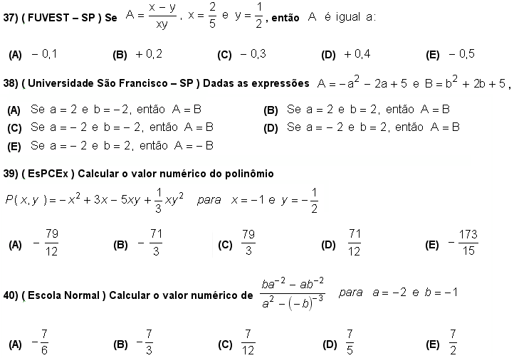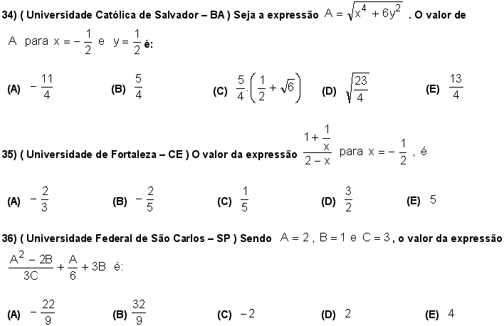 06) O simétrico do triplo do quadrado de um número diminuído de um outro número