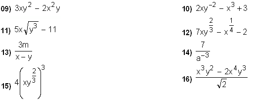 I - Escrever algebricamente, utilizando x e y como variáveis.