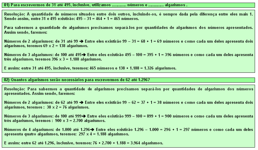 22) Para escrevermos de 27 até 498, inclusive, utilizamos ............. números e .............. algarismos .