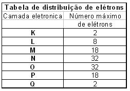 Cada uma das camadas eletrônicas tem um número máximo de elétrons. Veja qual é esse número no quadro que segue: