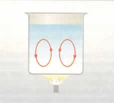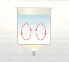 Ao se aquecer o recipiente por baixo, a porção de liquido que se encontra na parte inferior irá se aquecer rapidamente. Esse por sua vez dilata e se torna menos denso e, por isso, acaba subindo para a parte superior. O liquido que está em cima está mais frio e mais denso e, por isso, desce. Assim se estabelece uma corrente pela qual o calor é transmitido. Essa corrente é denominada corrente de convecção.