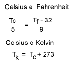 A temperatura, atualmente, pode ser medida em três escalas termométricas. Celsius, Fahrenheit e Kelvin. A conversão entre essas escalas pode ser feita pelas seguintes relações matemáticas: