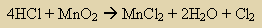 O cloro foi obtido inicialmente por Scheele, na sua forma gasosa, pela oxidação do ácido clorídrico (HCl) com MnO2: