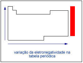 Assim, a eletronegatividade cresce na tabela de baixo para cima e da esquerda para a direita. Como os gases nobres não tentam "roubar" elétrons de ninguém, os excluímos dessa propriedade, sobrando então: