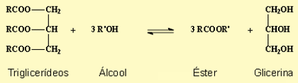 Na atualidade, a reação de transesterificação de óleos vegetais ou gordura animal (triglicerídeos) com alcoóis vem despertando muito interesse, sendo que o principal produto da reação (éster) possui propriedades similares às do diesel de petróleo, podendo ser utilizado puro ou adicionado ao diesel fóssil, comumente conhecido como biodiesel.