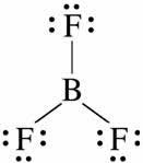 Como vemos, o átomo de boro forma três ligações simples, uma com cada átomo de flúor. Assim temos três zonas de repulsão e a geometria molecular é triangular plana, conforme a figura: