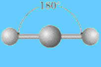 Disposição geométrica linear. Os átomos se posicionam em linha.