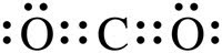 Note que o átomo de carbono estabelece duas duplas ligações, uma dupla ligação com cada átomo de oxigênio. A molécula de CO2 também pode ser representada conforme abaixo: