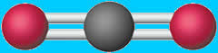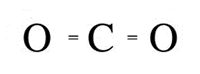 Representação esquemática da molécula de dióxido de carbono, que apresenta geometria linear.