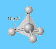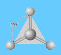 Disposição geométrica tetraédrica. Formato de tetraedro (pirâmide triangular).