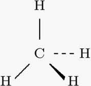 Representação esquemática da molécula de Metano, de geometria tetraédrica.