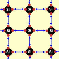 O silício e o germânio são os semicondutores mais utilizados no mercado. Vamos tomar como exemplo o silício. Em estado sólido, ele é sempre ligado a quatro outros átomos de silício. Em cada ligação, são compartilhados dois elétrons. Como pode ser observado na figura 1, o silício é um isolante, pois não sobram elétrons livres.