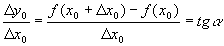 no ponto x0. Mas, o quociente D y0 / D x0 representa , como sabemos da Trigonometria, a tangente do ângulo