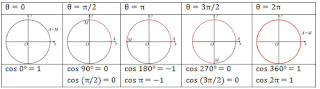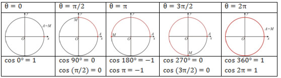 cosseno2Abaixo, os valores mais importantes de cos θ: