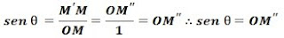 Agora observe o triângulo retângulo OM’M. Também podemos definir o seno do ângulo θ como sendo a razão entre o cateto oposto ao ângulo θ e a hipotenusa do triângulo OM’M. Veja: