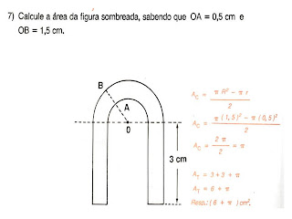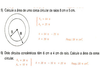 1) Calcule a área de uma coroa circular de raio 3cm e 5cm