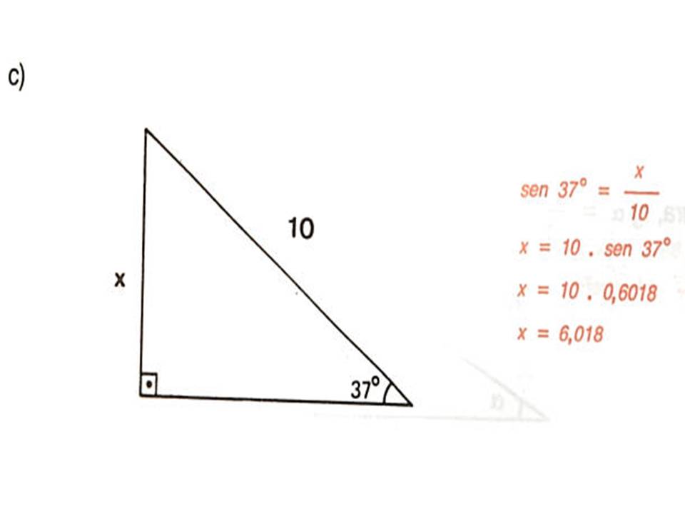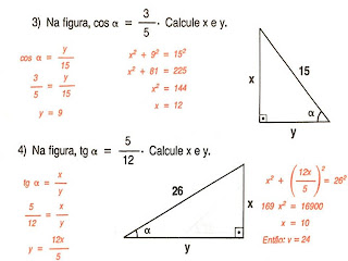 1) Calcular o valor de x no triângulo retângulo da figura abaixo.