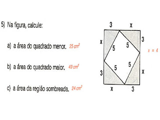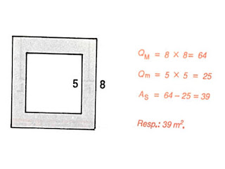 8) Calcule a área da figura sombreada, sabendo que o lado do quadrado maior mede 8m e do quadrado menor 5 m.