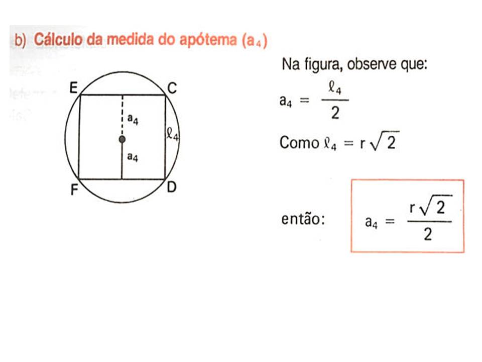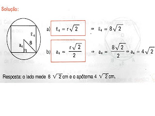 Calcular a medida do lado e do apótema do quadrado inscrito numa circunferência de raio 8 cm