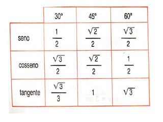 TABELA DE RAZÕES TRIGONOMÉTRICAS