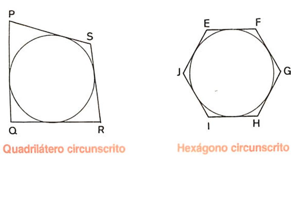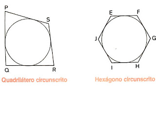 Dizemos que um poligno é circunscrito quanto todos os seus lados são tangentes à circunferência.