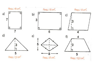 1) Calcule a área das figuras, supondo as medidas em cm: