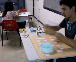 · Cartolina rosa e azul para a construção dos cartões e identificação das cores das casas no tabuleiro;