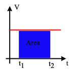 Uma propriedade importante de todo gráfico de velocidade em função do tempo é que se calcularmos a área entre a curva do gráfico delimitada por um determinado intervalo de tempo e o eixo do tempo, essa área será numericamente igual ao deslocamento do móvel .