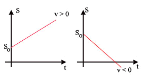 O ponto de partida da reta indica o espaço inicial do móvel e, se a reta tem inclinação para cima, a velocidade é positiva e o movimento é progressivo. Já se a reta tiver inclinação para baixo, a velocidade é negativa e o movimento é retrógrado.