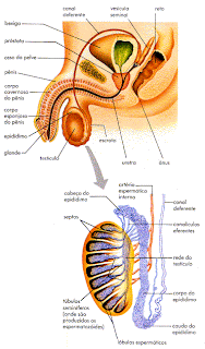 A produção de espermatozóides começa na puberdade, por volta dos 12 ou 13 anos de idade e vai até o fim da vida. Cada espermatozóide é formado basicamente de três partes: cabeça, colo e cauda com flagelo.
