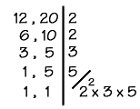 Exemplo 1 : Calculemos, por exemplo, o M.M.C entre 12 e 20.